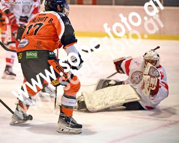 Eishockey, 2025/26-02-08; Div 1 , Velden Orange/schwarz - Ferlach weiss/rot