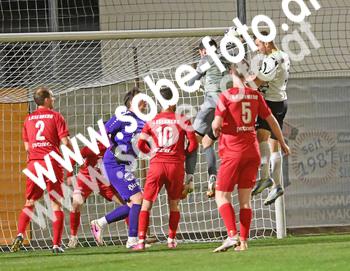 im Bild: ATSV Wolfsberg Marin Romac - Ferlach Martin Pasratschning rechts Florian Heindl Tor 3 -3